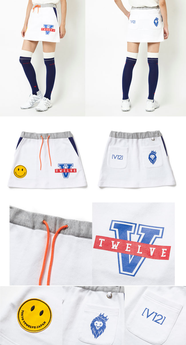 メーカー希望小売価格はメーカーサイトに基づいて掲載していますブランド名 V12 商品名 レディース スカート 商品番号 V121810-SK06 カラー ホワイト ネイビー グレー 表記サイズ モデル 162センチ 1サイズ着用 0(着丈35cm、ウエスト廻り62-67cm、ヒップ廻り90cm、裾幅50cm) 1(着丈37cm、ウエスト廻り66-71cm、ヒップ廻り94cm、裾幅53cm) 素材 綿 74%、ポリエステル 26% 説明 V12スマイルのワッペンが入ったスウェット素材のスカート。
