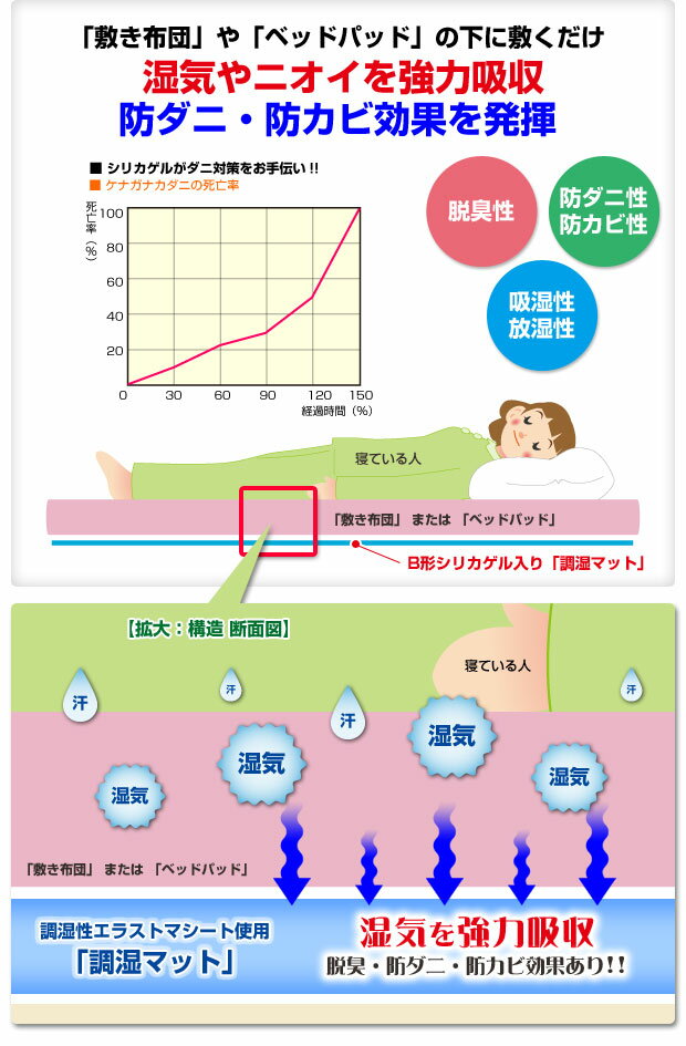 除湿シート 除湿マット 洗える 湿度調整マット 〔調湿くん〕 ノンスリップタイプ 90x120cm 布団湿気取り 湿気対策 寝具 ウォッシャブル 丸洗いok カーペット マットレス 梅雨対策 梅雨対策